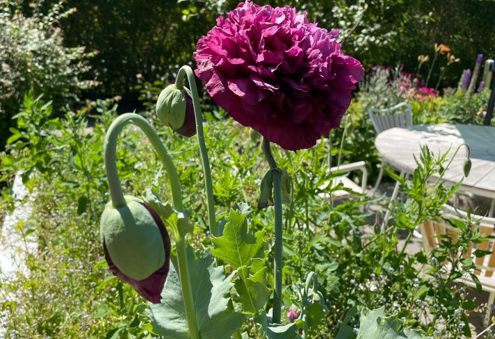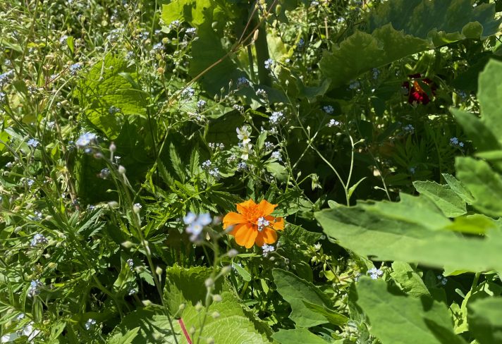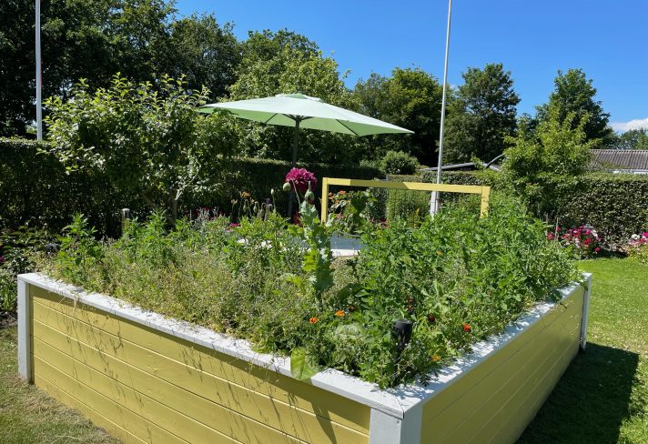 Nogle af dem, som fik blomsterfrø, var Rasmus og Tea i have nr. 88B. De tog imod frøene, fordi de gerne ville støtte fællesskabet i foreningen og fremme biodiversitet. Nu står de vilde blomster i fuldt flor i deres have: ”Vi har ladet hele vores højbed stå med vildtblandingen, og vi synes, at det ser sjovt, vildt og frodigt ud”, fortæller Rasmus Konnerup.